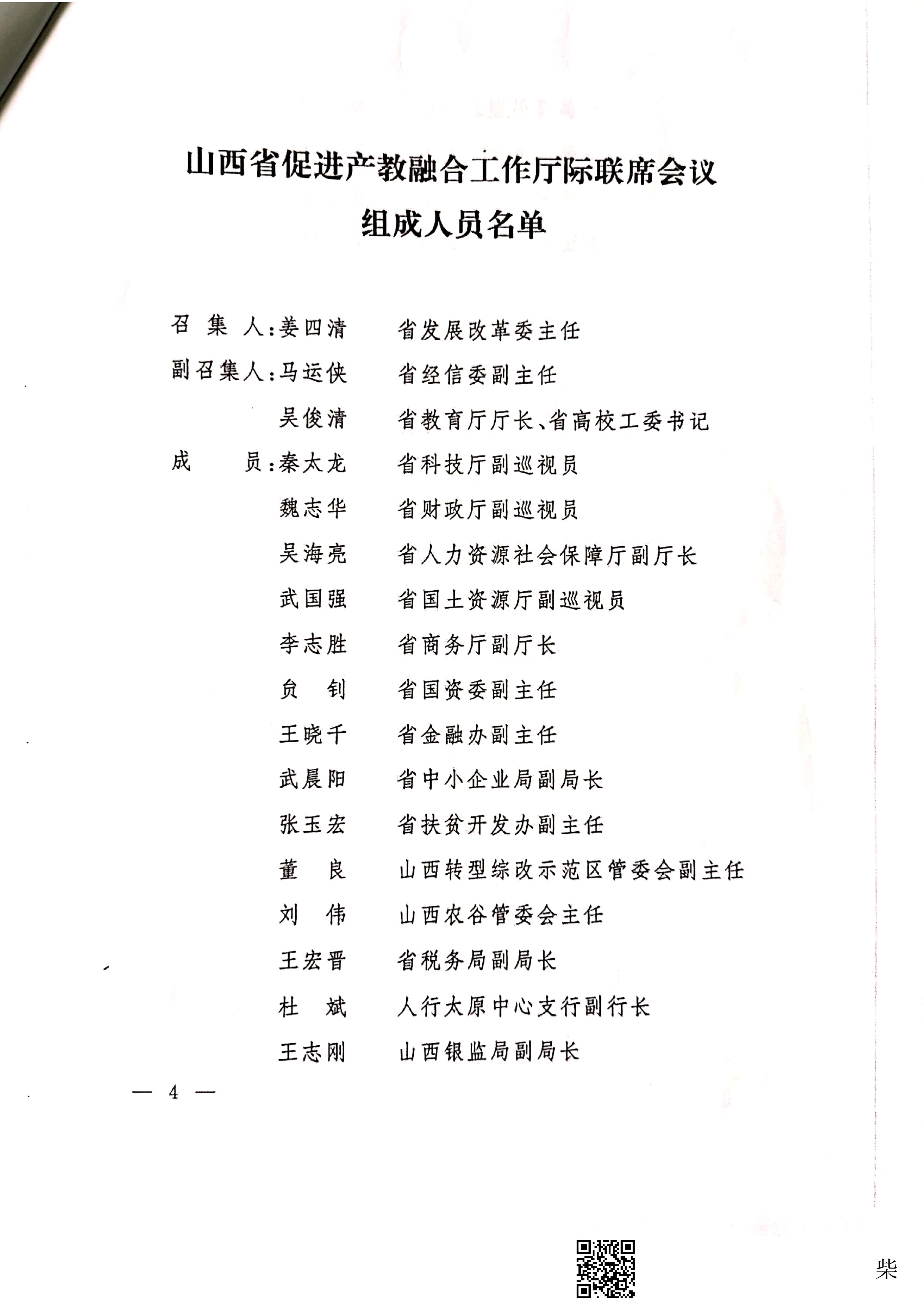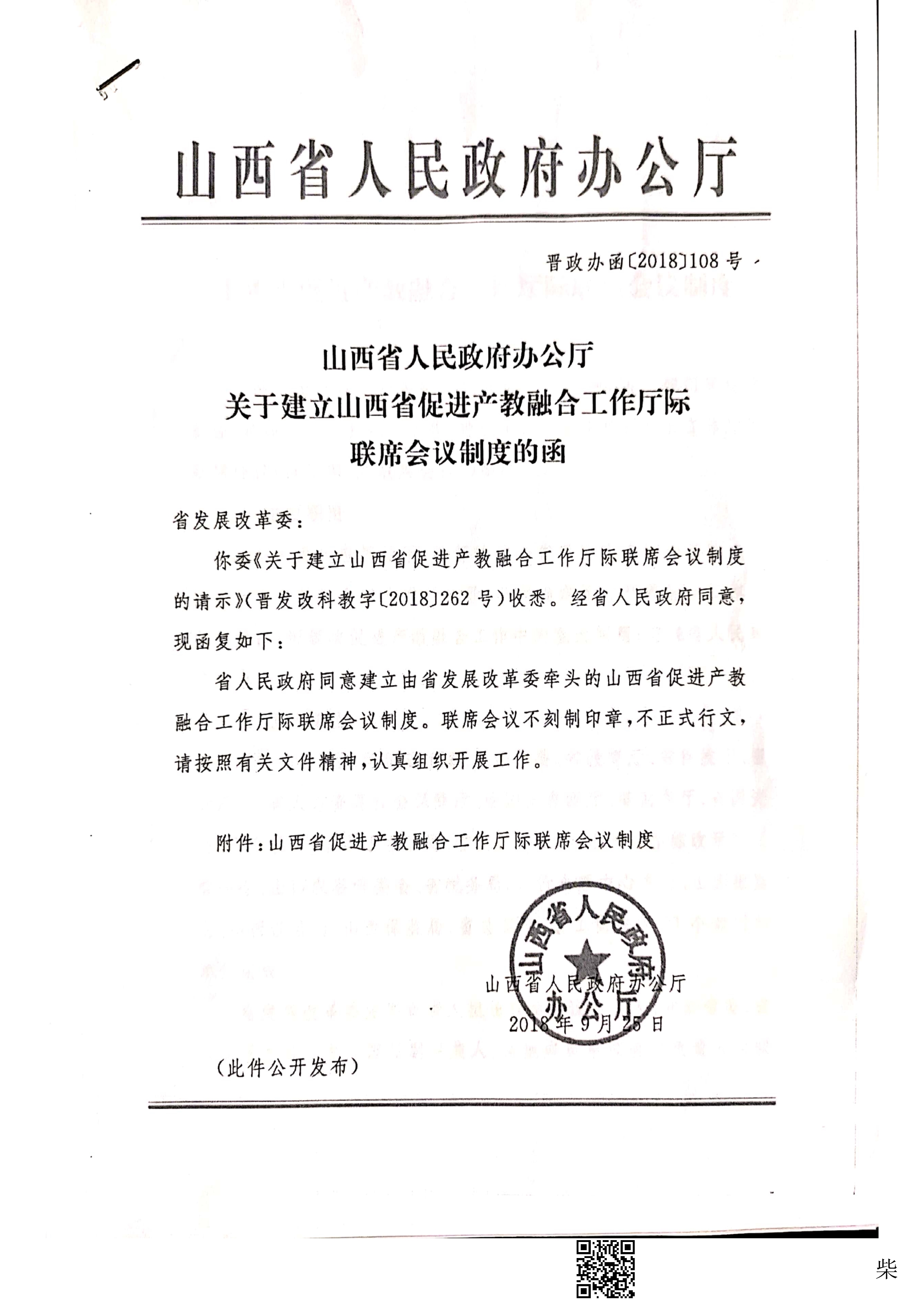 关于建立山西省促进产教融合工作厅际联席会议制度的函(晋政办函〔2018〕108号)