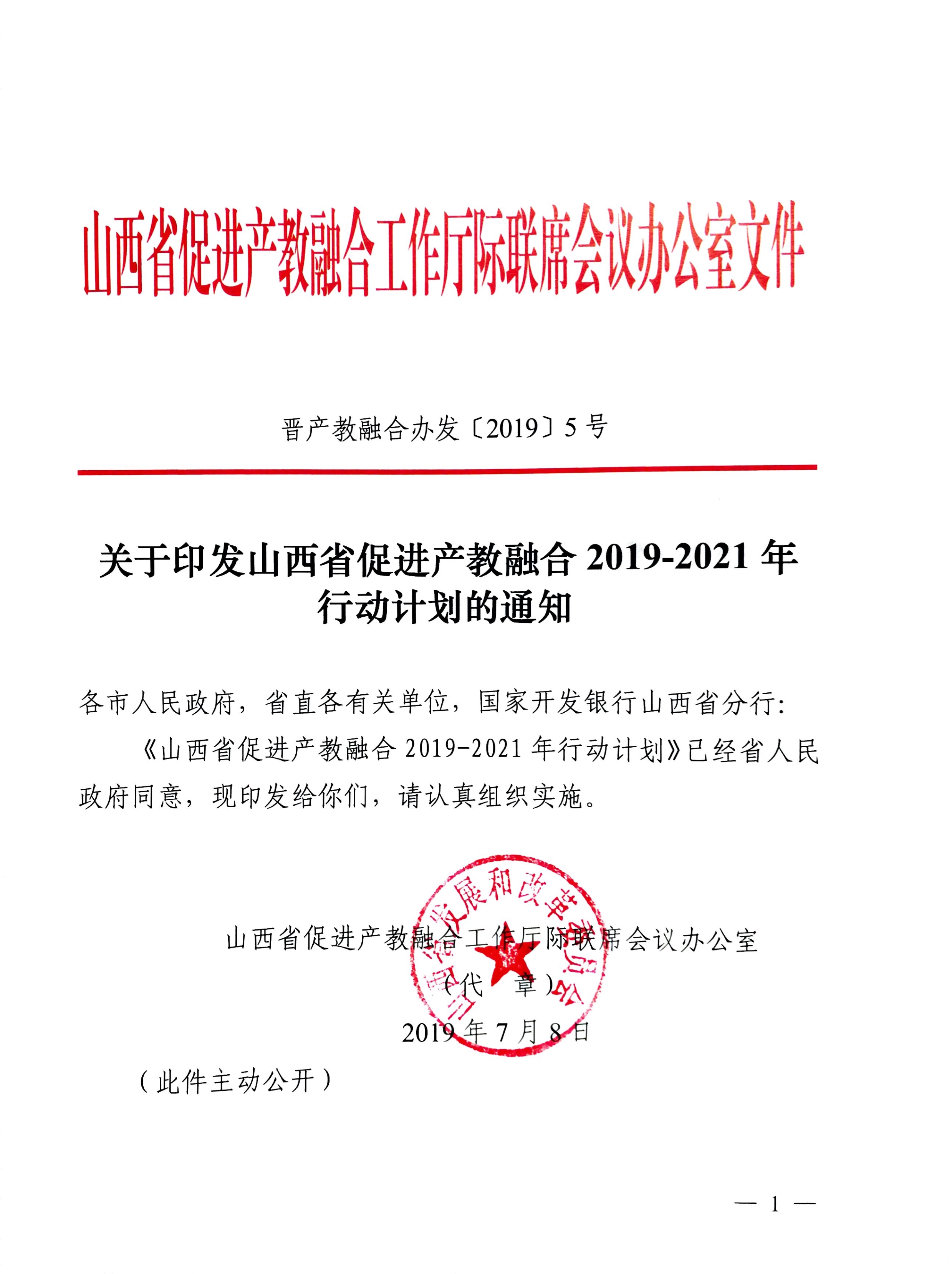 关于印发山西省促进产教融合2019-2021年行动计划的通知
