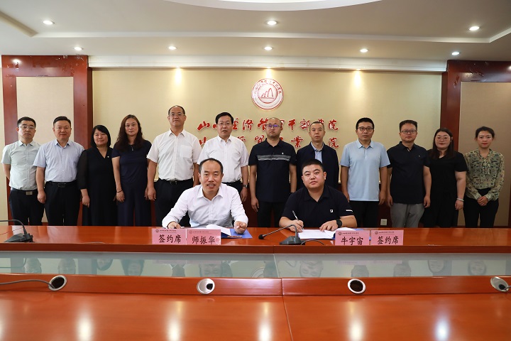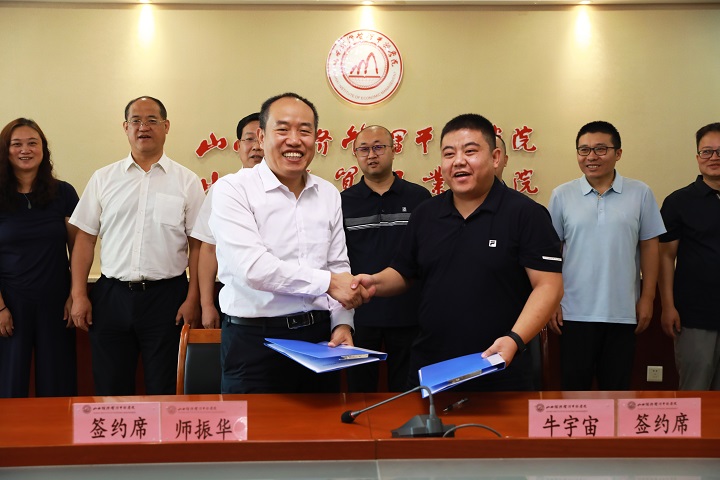 在全体与会人员的共同见证下,师振华、牛宇宙代表校企双方签署了合作协议。