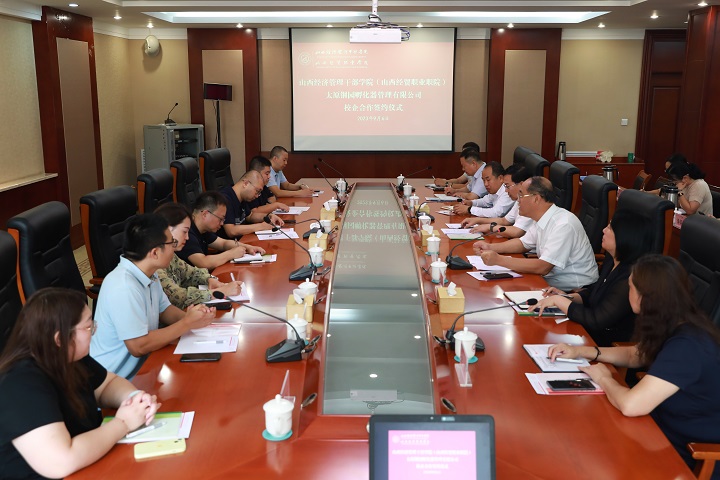 贾绘泽对太原钢园孵化器管理有限公司一行的到来表示热烈欢迎,表示此次签约是在7月“访企拓岗促就业专项行动”的基础上,经过了多次的沟通协商,最终达成的合作,希望合作能够给学院和学生未来发展提供助力。贾绘泽介绍了学院的基本情况和干部培训及职业教育近年来的发展成果,指出通过双方的校企合作能够进一步推动学院在产教融合、协同育人、专业建设、学生就业创业、国际化人才培养等方面的发展,能够给学生提供更多的资源,培养适应社会需要的高层次人才。希望通过双方精诚合作,互相扶持、双向介入、优势互补、资源共享,充分发挥各自优势,实现双赢目标。