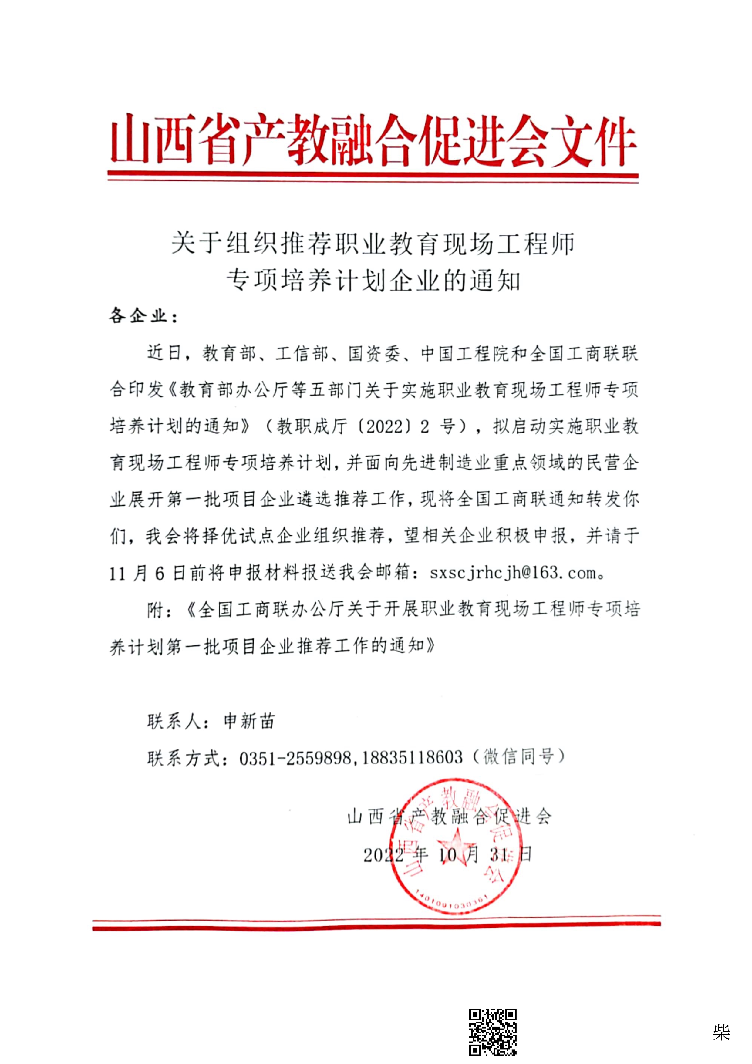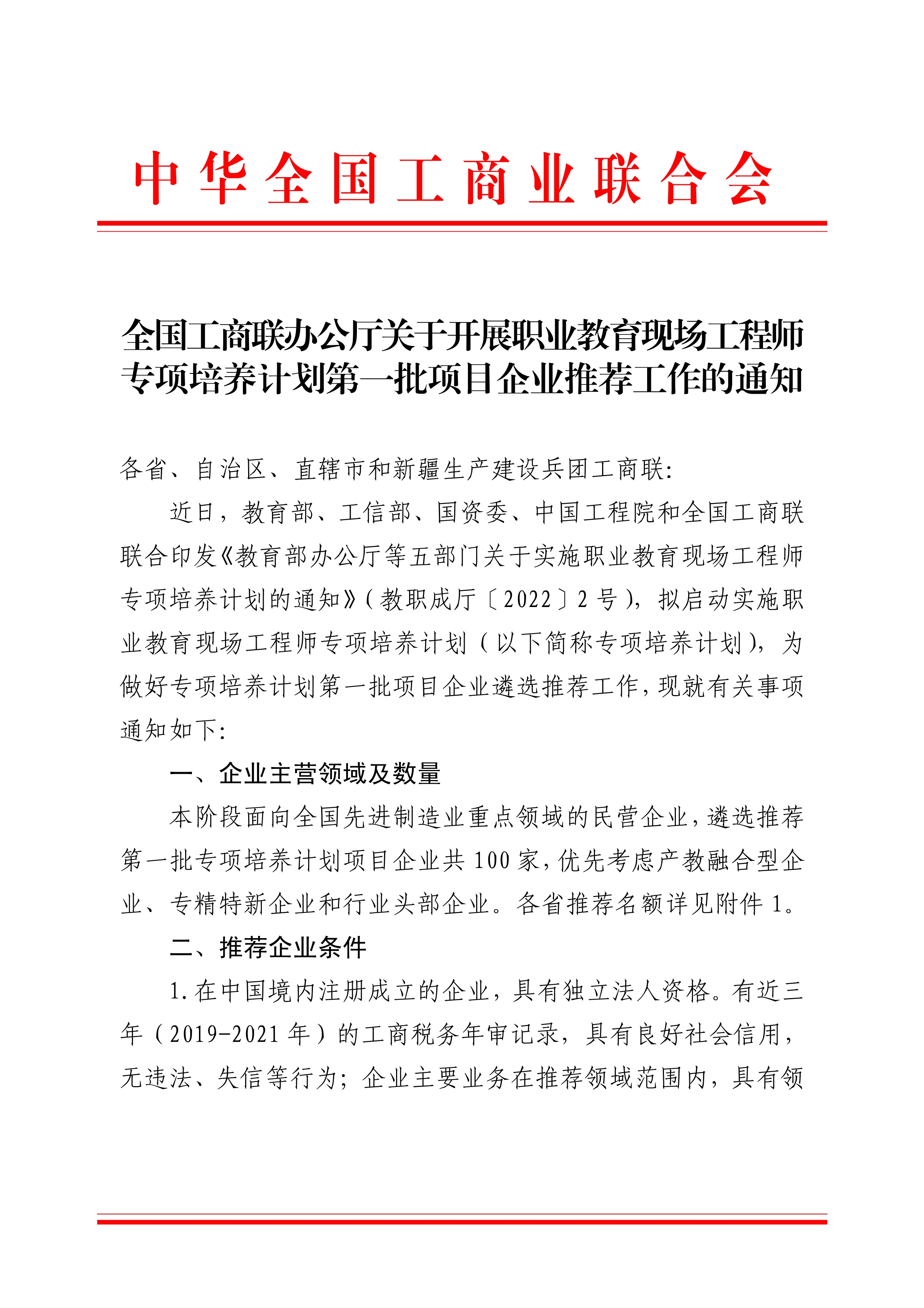 关于组织推荐职业教育现场工程师专项培养计划企业的通知
