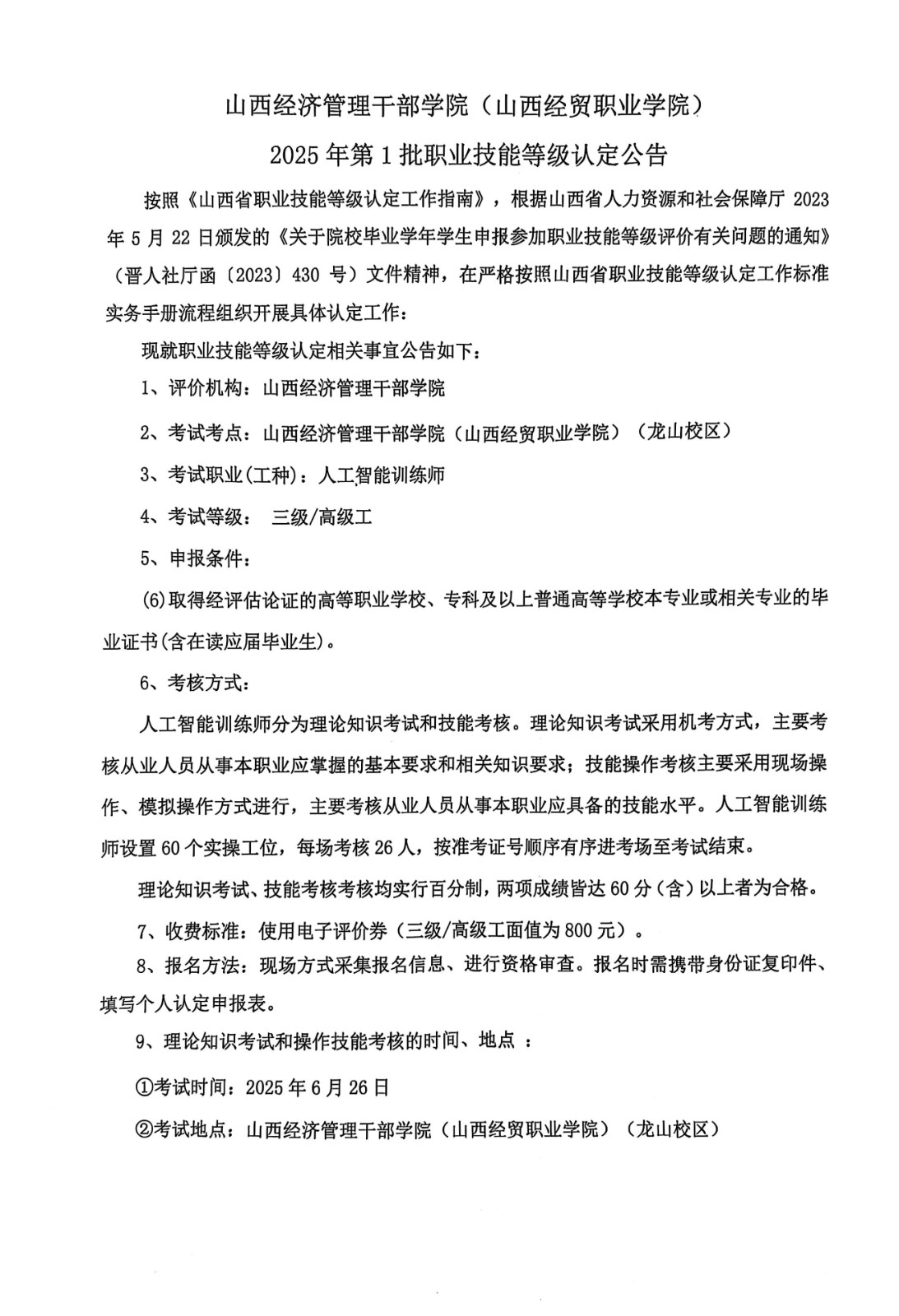 Beat365唯一官方网站2025年第一批职业技能等级认定公告