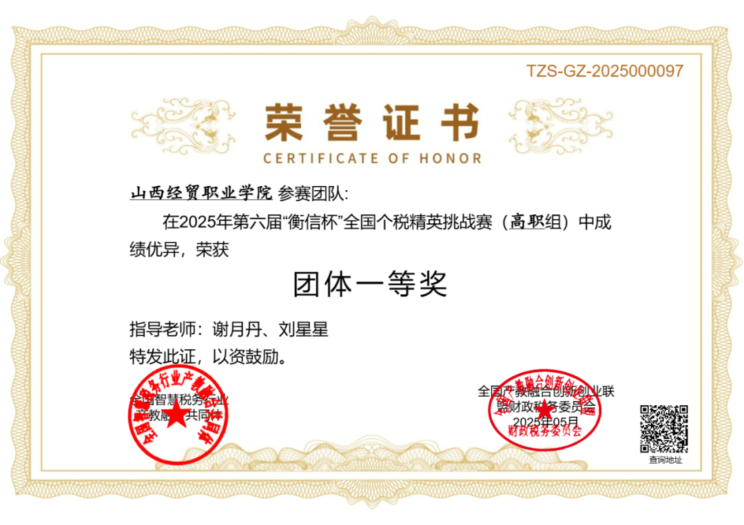 财会系学子参加“衡信杯”2025第六届全国个税精英挑战赛(高职组)荣获全国一等奖