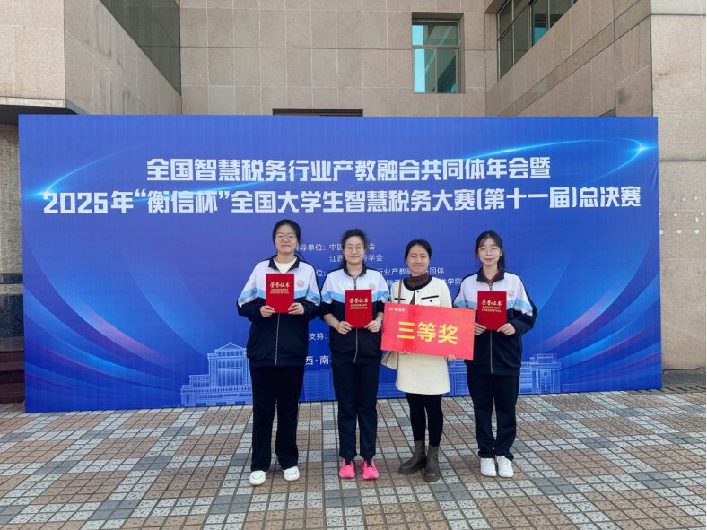 近日,由全国智慧税务行业产教融合共同体、江西财经大学、陕西财经职业技术学院共同主办,中国税务学会、江西省税务学会提供指导,浙江衡信教育科技有限公司提供技术支持的2025年“衡信杯”全国大学生智慧税务大赛(第十一届)总决赛圆满落幕。在本次比赛中,我系谢月丹老师指导并带队,马佳钰、刘婧彤、尹彤3位同学组成的参赛队伍凭借扎实的专业知识、娴熟的实操技能和良好的团队协作精神,获山西省省赛一等奖、总决赛全国三等奖的优异成绩。