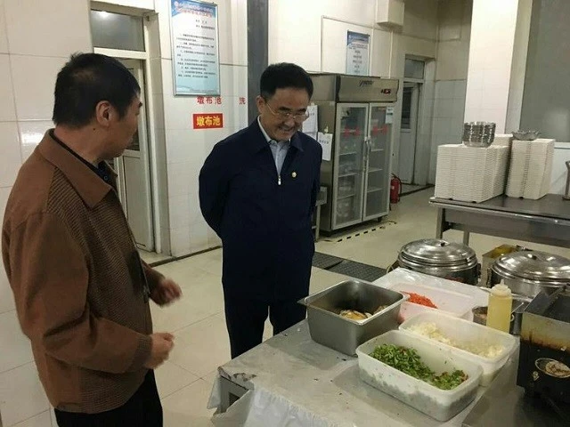 食堂面临的困难后勤的领导都看在眼里,也用具体的行动做出了支持。后勤处的全体成员专门为食堂做出了值班安排,两人一组,每天在就餐高峰期帮助维持秩序,解决突发问题。为了能够科学提高就餐效率,后勤处副处长杜志平和膳食科工作人员一起商议军训期间学生就餐食谱的制定。还联系学生处工作人员及军训教官一起研究如何合理安排就餐时间和批次,以便能够使就餐更加井然有序。杜志平副处长还经常性的深入学生当中收集反馈意见,现场监控有无价质不符,侵害学生利益的事情发生。