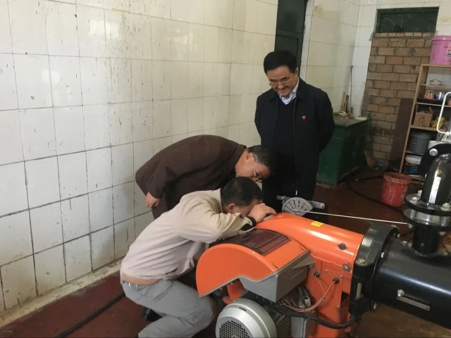 冬季供暖作为一项重要的后勤保障工作,直接关系到全院师生员工正常的生活、教学和科研工作,学院各级领导一直非常关注冬季供暖工作的进展情况。在学院的统一部署下,后勤处动力科有序开展各项供暖工作,并采取多项有效措施,确保供暖质量。今天,党委委员、副院长李晋平在后勤处副处长杜志平、李晓东的陪同下,深入南校区锅炉房供暖工作一线,实地检查,并慰问了坚守在供暖一线的工人师傅们,感谢他们的辛苦付出,希望他们严格规范操作流程,确保设备良好运转状态,达到供暖质量要求。