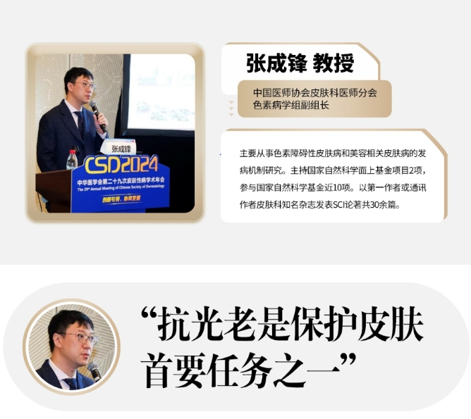 谈到抗光老的意义,张成锋认为,在解决皮肤美白问题上,大部分方案都是针对黑色素、抗氧抗糖等,往往会忽略‘光老化型暗沉’的重要性。除了关注肤色的及时改善,还需要着眼于皮肤的美观与健康。