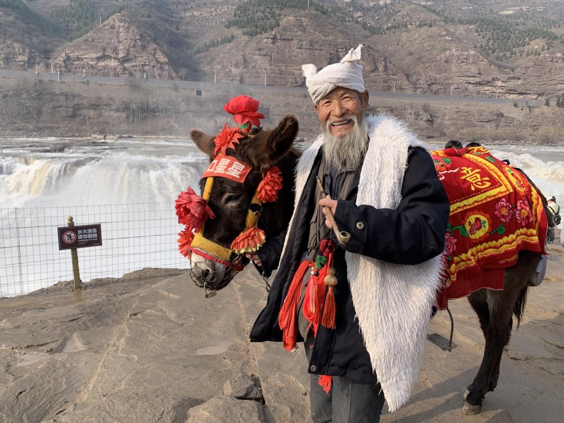 “我就爱到这黄河边来,开阔,心情好!”今年72岁的张老汉,打小生活在吉县的瀑布边上,每天牵着毛驴来堤岸上做拍照生意。