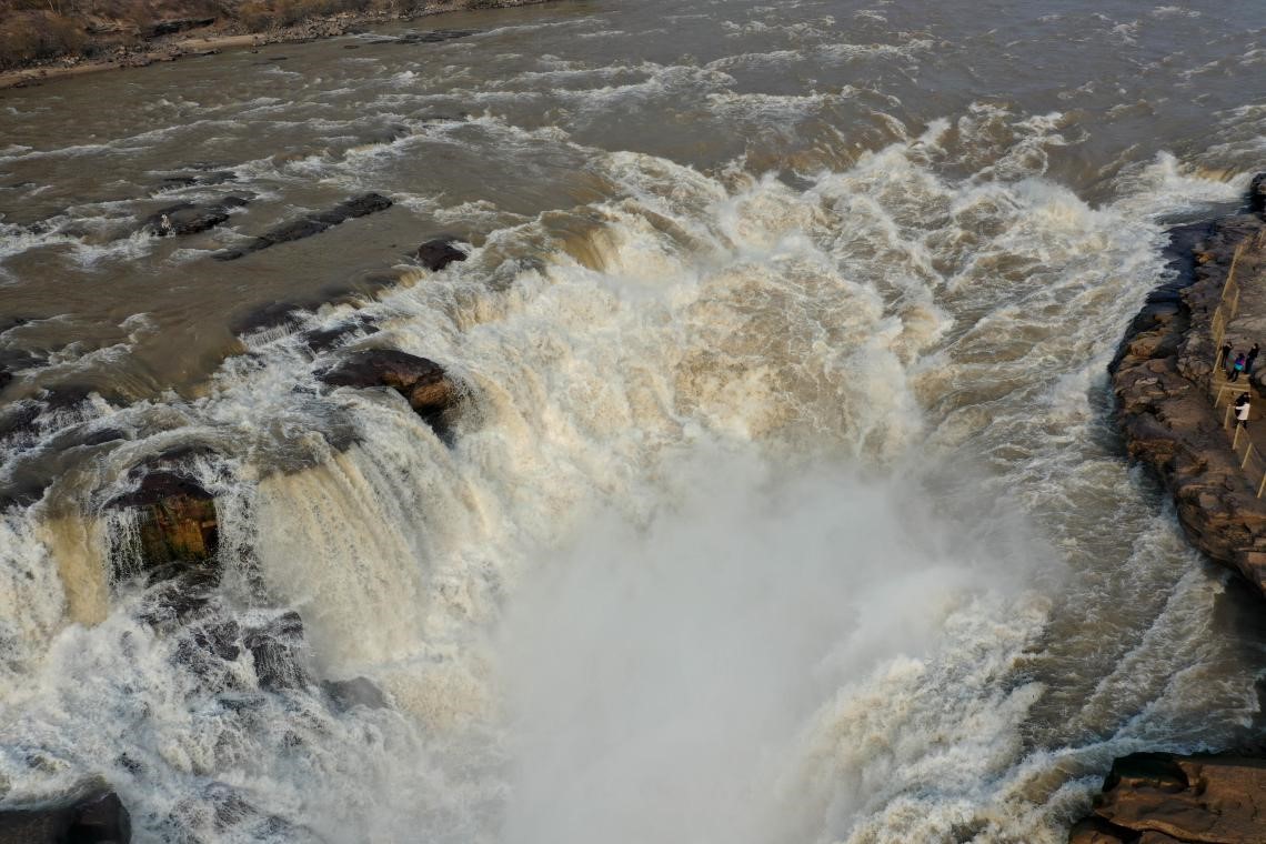 壶口景区负责人赵峰告诉记者,“每年凌汛期瀑布最容易北移,冲刷下来的冰块把下面的碎石推倒了。民间的说法是每天移一根针尖的距离,我们实测,每年大概移动0.3米左右。”