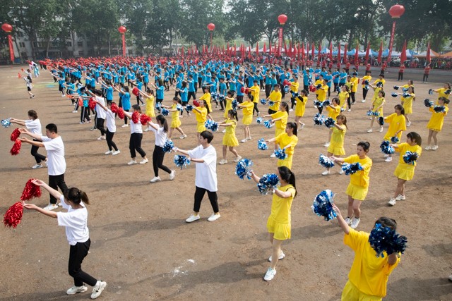 在学子活力的舞蹈中,团体操表演精彩上演。手中的拉花献给最可爱的人,坚毅的身姿传承着“五四”薪火,艺术设计系同学们用变幻的舞姿告诉我们青春的色彩最绚丽,奋斗的人生最精彩;奏出时代的最强音,唱起世纪的新旋律。电子信息工程系同学们高举五星红旗“迎接挑战 开创未来”,条幅上的铮铮誓言是践爱国之行,展鸿鹄之志的最好证明;中国范儿,中国字儿,中国精神,中国气派,管理工程系同学们在极具中国风的乐曲中传递着中华儿女对祖国母亲的美好祝愿;满眼春华扑面来,姹紫嫣红百花开。由165名财会学子组成的团体操队伍,用扇舞跳出了对生活的热爱、对未来的向往,也跳出了经贸学子如诗如画的青春风采。团体操在热情时尚、优雅奔放的排舞大联欢中画上了圆满句号。