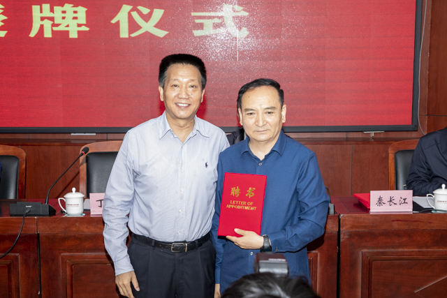 党委书记丁怀民书记宣读《关于聘任山西省科协---山西经干院科技经济融合创新研究中心主任及研究员的通知》,《通知》决定聘任王杰敏同志担任山西省科协---山西经干院科技经济融合创新研究中心主任,秦长江、朱忠良、谢世娟、张莹、张丹荣、师振华、王永芳、赵刚、胡晓东、张江伟等10位同志为研究员。丁怀民书记向王杰敏同志授聘书。
