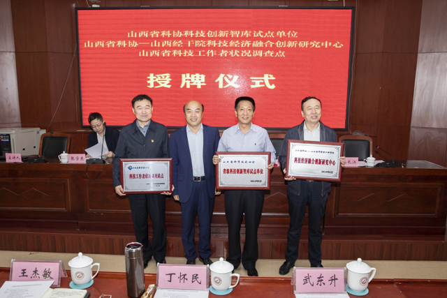 授牌仪式上,张学东宣读了“省科协关于设立智库试点等的通知”;郝建新依次为Beat365授“山西省科协科技创新智库试点单位”牌、“科技经济融合创新研究中心”牌和“山西省科技工作者状况调查站点”牌。院领导丁怀民、武东升、秦长江分别代表学院接牌。