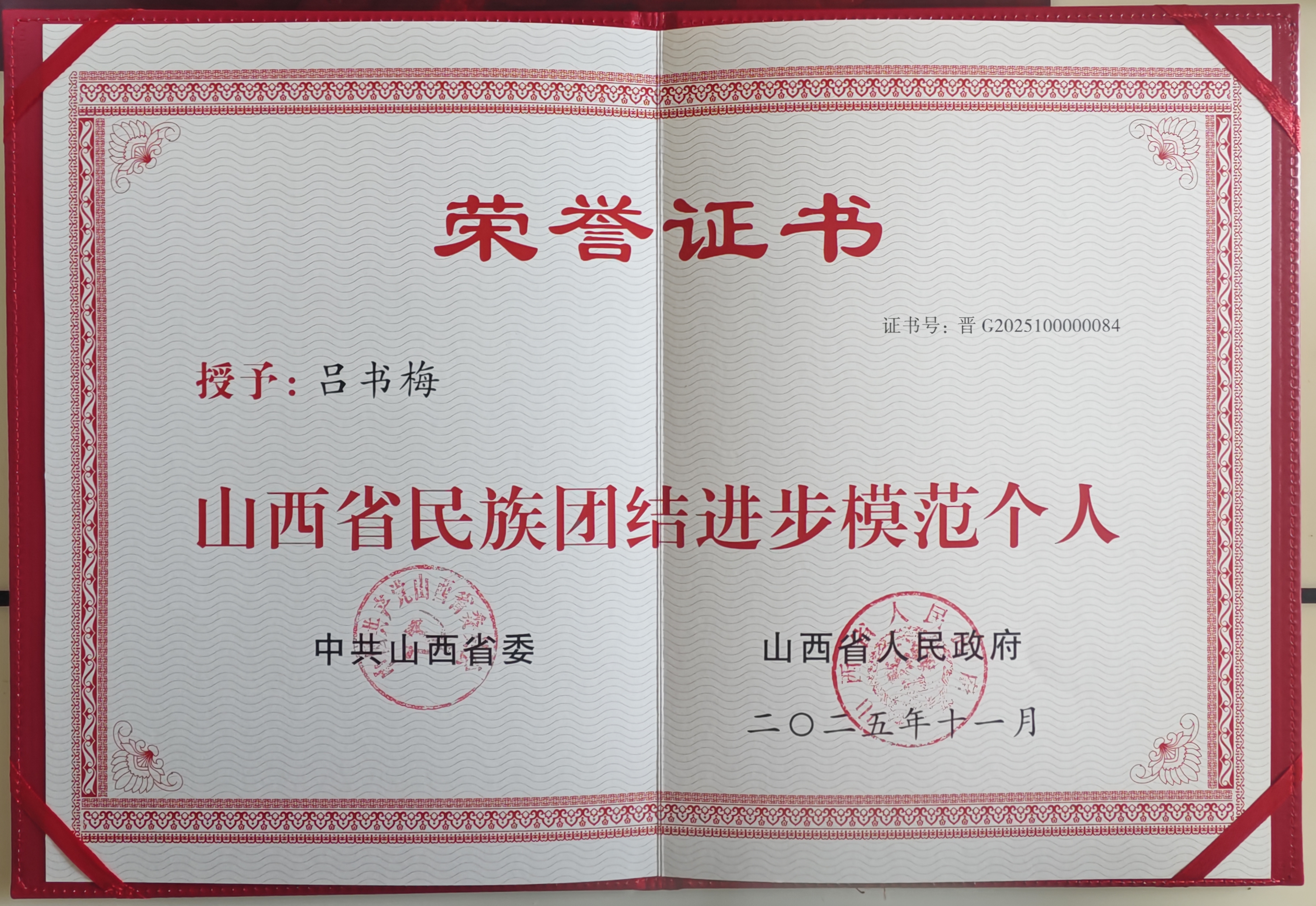 11月19日,我省召开民族团结进步表彰大会。Beat365吕书梅教授获得“山西省民族团结进步模范个人”称号。