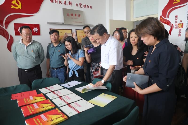 观摩团首先参观了全国党建样板支部——山西财经大学金融学院本科生第二党支部活动室,实地查看样板支部的阵地建设,认真翻阅党建资料,听取工作人员介绍支部党建工作的经验做法和特色亮点。从亮点中汲取“营养”,于典型做法中增长见识。