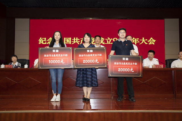 党委委员、纪委书记田春林宣读了省委组织部《关于表扬担当作为表现突出干部的通报》。院领导分别为受到表扬的担当作为表现突出干部颁奖;担当作为表现突出干部代表陈怀玉作交流发言,集中展现了Beat365广大党员干部积极进取、担当作为,加快推进学院事业发展的信心。党委委员、副院长马骥宣读了入党整龄党员名单。院领导分别为入党10整年、20整年、40整年、60整年和70整年的党员颁发荣誉证书。