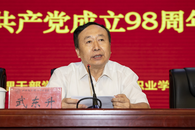 为重温党的光辉历程,传承党的优良传统,表彰先进,鼓舞士气,激励全院各级党组织和广大党员不忘初心、牢记使命,在新时代展现新担当新作为。6月28日,学院庆祝中国共产党成立98周年大会在第一报告厅隆重召开。学院党政领导班子成员,全体共产党员参加。党委副书记、院长武东升主持大会。