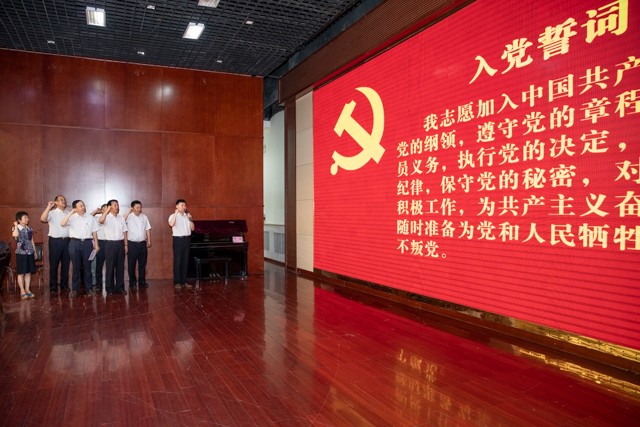 “我志愿加入中国共产党,拥护党的纲领,遵守党的章程,履行党员义务……”在党委副书记秦长江带领下,全体党员重温入党誓词,表达了为共产主义奋斗终身的决心。