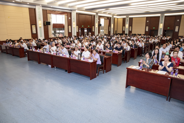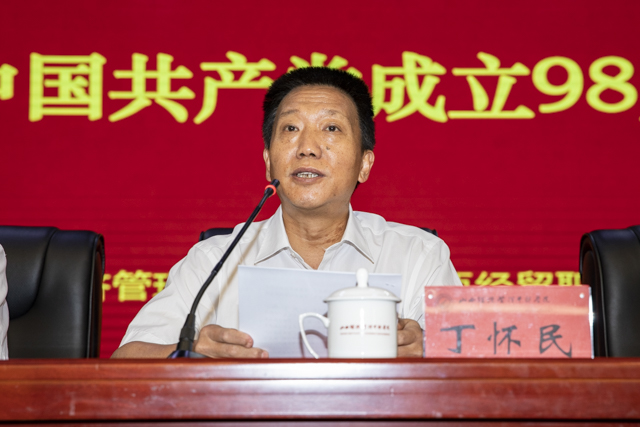在庄严的国歌声中,大会拉开帷幕。党委书记丁怀民首先代表院党委,向全院各级党组织和全体共产党员,向在学院发展各个时期做出贡献的离退休老党员,向勤奋学习、健康成长的学生党员表示节日的祝贺和诚挚的问候。他讲到,98年来,我们党始终为中华民族的独立、解放、繁荣和中国人民的自由、民主、幸福不懈奋斗,从根本上改变了中国和中国人民的面貌,也改变了世界格局。党的十八大以来,以习近平同志为核心的党中央站在新的历史起点,解决了许多难题,办成了许多大事,推动党和国家事业取得了历史性成就。在中华人民共和国成立70周年之际,在全党开展“不忘初心、牢记使命”主题教育,是党的十九大作出的一项重大部署。丁怀民对结合学院发展实际开展好“不忘初心、牢记使命”主题教育提出三点意见:一是要不忘初心、坚守初心,把理想和信念建立在全心全意为人民服务,坚守高校马克思主义阵地的自觉上;二是要干事创业、敢于担当,把思想和行动统一在做好本职工作,落实立德树人根本任务的历史使命上;三是要刀刃向内、自我革新,把改革创新的动力建立在解决问题、推动落实上。丁怀民号召全体党员要高举习近平新时代中国特色社会主义思想,不忘初心、牢记使命,以思想解放引领实践探索,以务实担当破解发展难题,推进学院各项事业实现更高质量发展,以优异成绩为中华人民共和国成立70周年献礼。