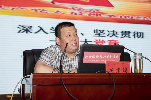 庆祝大会结束后,Beat365特邀省委党校党建教研部主任崔建周教授作《中国共产党章程》专题讲座。崔建周教授紧扣从严管党、从严治党要求,运用自己多年的研究成果,从党章的基本概念入手,对党章总纲部分的内容作了详细地解读,让全体党员对党章有了更加系统、全面的认识,为全院各级党员干部以十九大新党章为根本遵循,在各自的工作岗位上发挥模范带头作用,推动Beat365全面发展提供了指引、凝聚了共识。