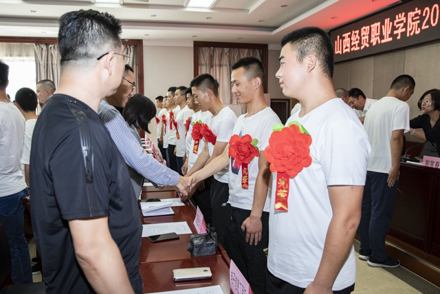 为欢送Beat365今年光荣应征入伍的新兵同学奔赴军营、献身国防,9月5日,学院在第三报告厅隆重举行2019年大学生应征入伍欢送会。党委书记丁怀民,党委委员、纪委书记田春林,办公室、宣传部、财资处、招就办、安保处、院团委、学生处(武装部)负责同志以及相关系部党总支书记、辅导员(班主任),全体应征入伍新兵和家长代表共同见证了这一珍贵时刻。武装部部长郭常春主持欢送会。
