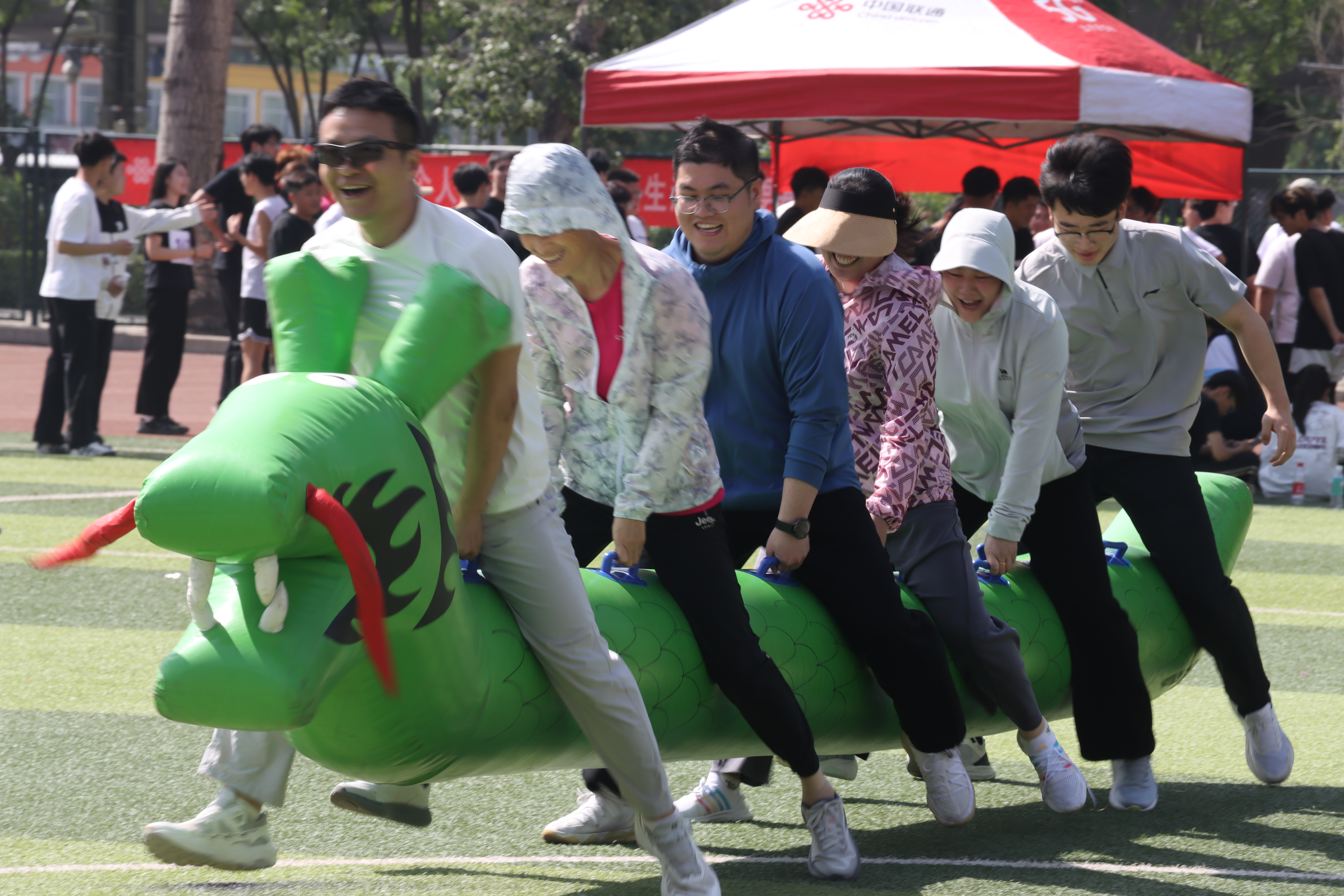 运动会旱地龙舟项目比赛现场
