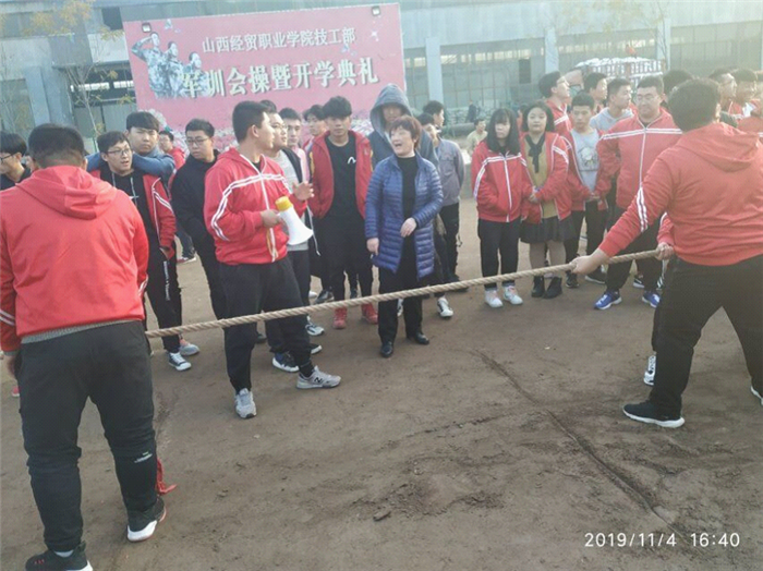 参赛队伍以班级为单位,共有12支队伍,各班级代表队都派出了最强的参赛阵容,齐心协力,勇争第一!当比赛的哨声一响起,队员们使出浑身力气把绳子向后拉,绳子中间的红线左右摇摆。两边队员都整齐地往后倒、向后退,未参与的同学也在队伍旁边助阵加油,恨不得抓起绳子和队员们一起努力,竭力大喊“加油”!号子声、呐喊声,此起彼伏,飘荡在整个操场上空。董淑红老师和张国峰老师也来到了比赛场地观看同学们的比赛,给同学们加油呐喊。经过历时三天的角逐,19自动化班取获得了第一名。