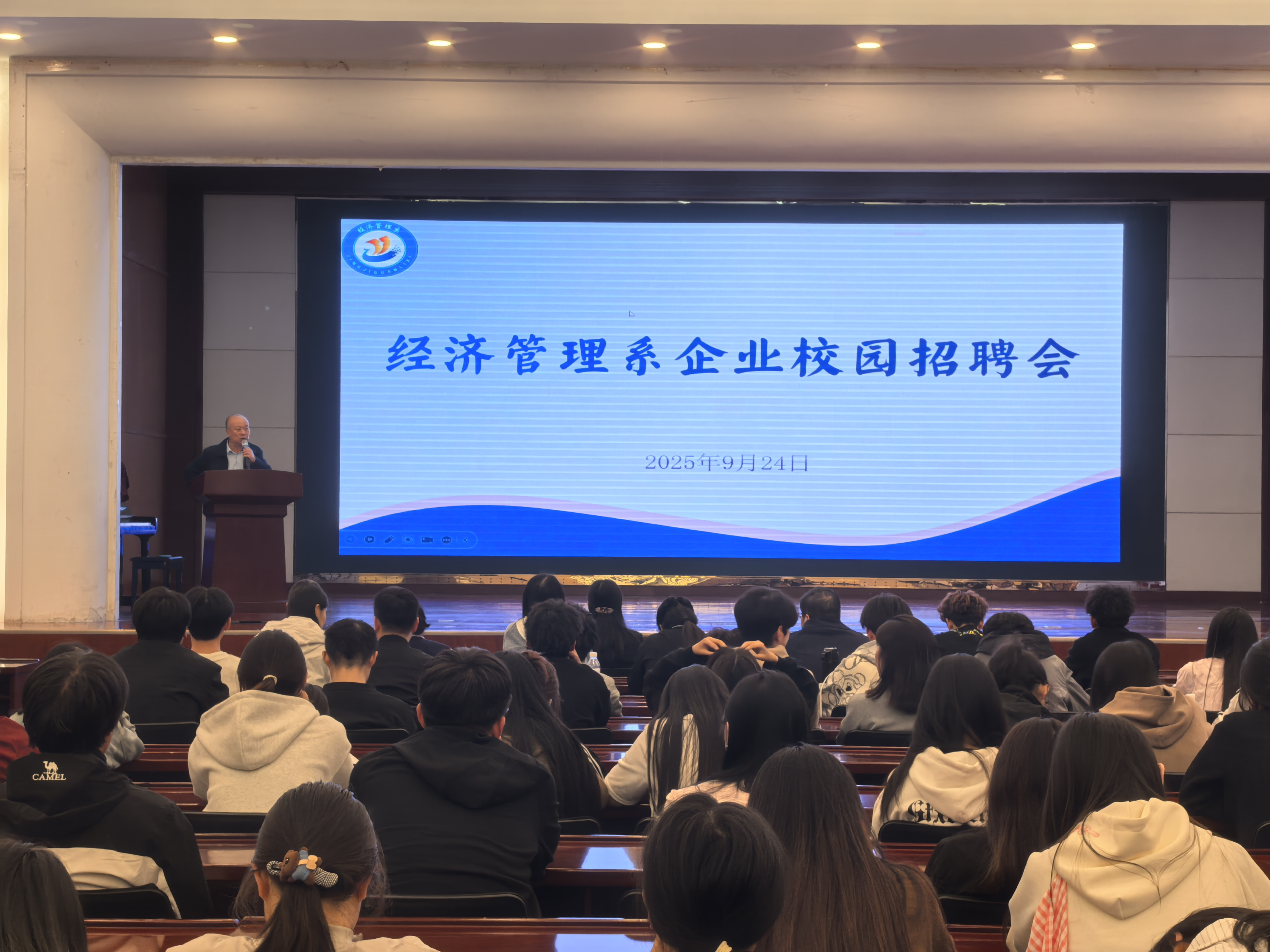 为做好2026届学生实习就业工作,近日,经济管理系在学院第一报告厅召开实习安全动员会暨企业校园招聘会,系党政班子成员、全体实习生及辅导员参会。