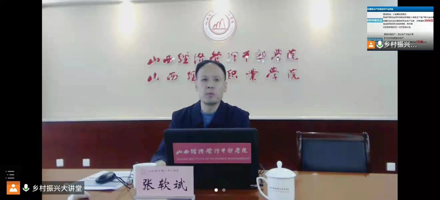 乡村振兴“云课堂”系列培训第一讲,邀请了省农业农村厅党组成员张软斌同志进行中央一号文件精神解读。张软斌长期从事农业农村管理工作,在农村改革、乡村治理、乡村建设等方面有比较深入的研究,多次参与省委一号文件、农业农村发展规划等起草。张软斌对农业农村充满感情,对“三农”工作非常熟悉,他结合我省“三农”实际,几次提到岚县农业特色,以通俗易懂的语言,信手拈来特色案例,生动清晰地从保障国家粮食安全和不发生规模性返贫两条底线任务,乡村发展、乡村建设、乡村治理三方面重点工作,加强党对“三农”工作的全面领导等方面多角度对中央一号文件及在我省的实际落实进行了深入解读。最后互动环节,多位培训学员结合自己工作实际积极提问,老师作了现场解答。