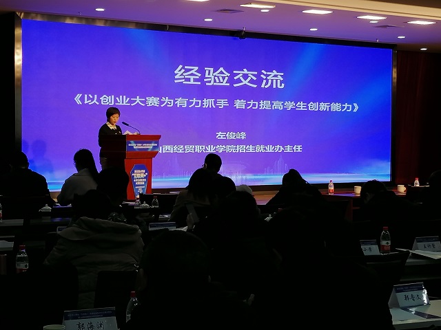 会上招就办主任左俊峰代表学院在大会上作了题为《以创业大赛为有力抓手 着力提高学生创新能力》的专题报告。她结合Beat365创新创业工作实际,从加强组织管理、健全双创工作体制机制,强化师资建设、促进双创工作提升,注重赛教融合、完善双创人才培养体系,加强载体管理、打造双创实践平台,加强竞赛管理、创新竞赛工作模式 ,加强制度建设、保障双创工作体系有序运行六个方面汇报了Beat365“互联网+”大学生创新创业大赛工作的有益探索和尝试。