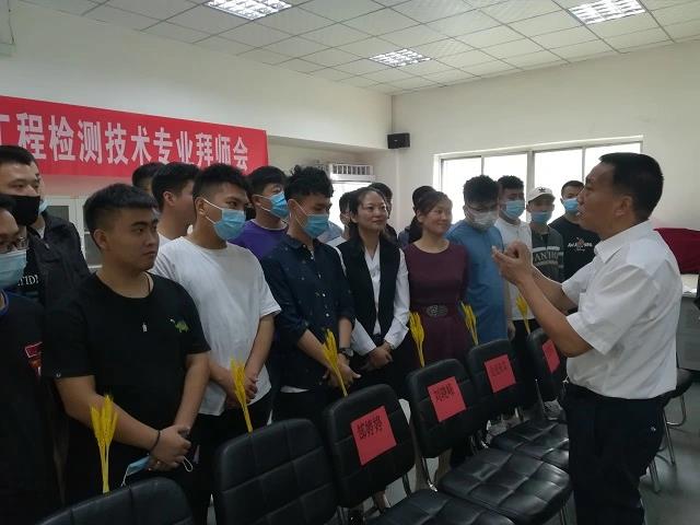 系领导张安民、康建红,企业带教师傅、建筑工程系教师、18华范检测班全体学生早早地就来到会场。他们为这一试点项目付出了很多。为了落实好赴企业实践学习任务,系党总支张安民书记在假期返校前就积极筹划学生入企安全等事宜,安排做好学生健康监测和疫情防控等工作;康建红主任主持召开了多轮校企协调、教研室工作安排会议,研究安排重点任务及落实推进节点,极力促成了这次拜师仪式,并对拜师流程进行了策划指导。郭燕飞、赵帅、魏琼等同志仔细研究推敲拜师仪式的各个细节,为奉上一场既隆重又简朴、别开生面的拜师仪式费尽心思。让学生满意、家长放心、学院安心是全系所有教职工的共同心声。