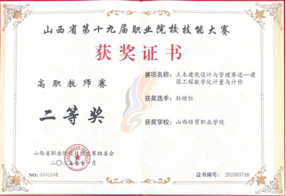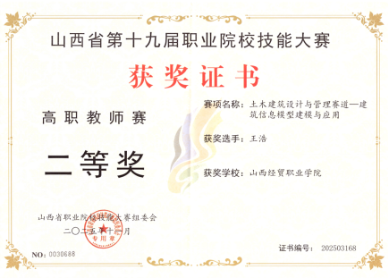 建筑工程系在山西省第十九届职业院校技能大赛高职组“建设工程数字化计量与计价”、“建筑信息模型建模与应用”两个赛项中斩获佳绩,共计获得二等奖2项、三等奖1项。