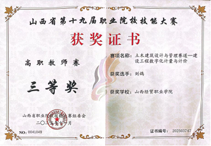 “建设工程数字化计量与计价”赛项于2025年11月15日在山西电力职业技术学院举行,刘鸽、赵帅、孙继红、郭燕飞老师带领6名学生参赛;“建筑信息模型建模与应用”赛项同期在山西工程科技职业大学举行,王浩、赵鹤晖老师带领3名学生参赛。师生们放弃休息,扎根机房,逐项攻克赛项难点,精进软件操作技能,最终在竞争中脱颖而出,喜获荣誉。