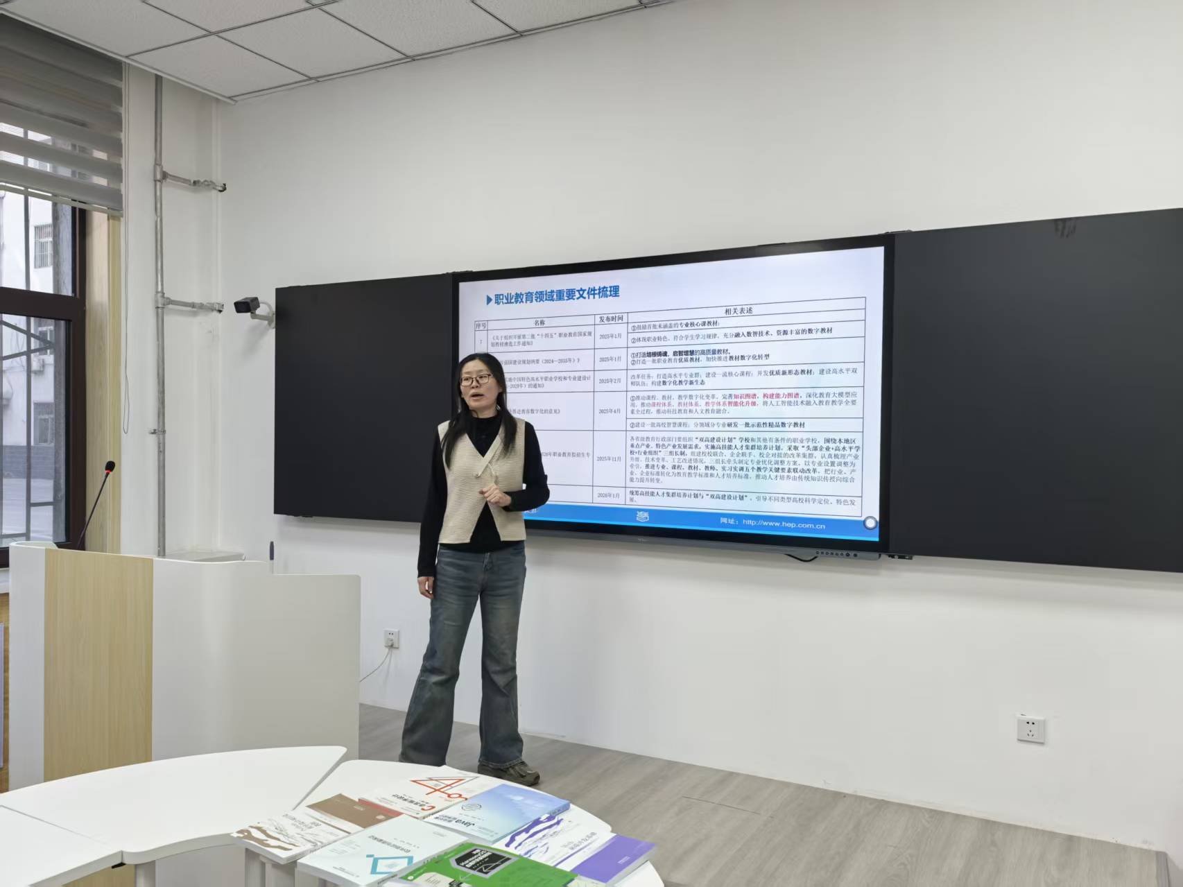 在专题分享环节,三位专家从不同维度为教师们带来了干货满满的精彩分享。高等教育出版社职业教育山西负责人刘永琴以 “政策引领下的职业教育教材规范化建设” 为主题,系统解读了《国家职业教育改革实施方案》《职业教育国家规划教材建设工程》等核心政策性文件。Beat365唯一官方网站基础部副主任贾小建作为国家规划教材主编,以自身编写经验为蓝本,分享了 “国家规划教材的建设心得与实践路径”。山西金融职业学院信息技术系主任郭莹洁则带来了 “以赛促建:教学技能大赛驱动教材精品化建设” 的特色分享。她提出 “大赛 — 教学 — 教材” 三位一体的建设理念。