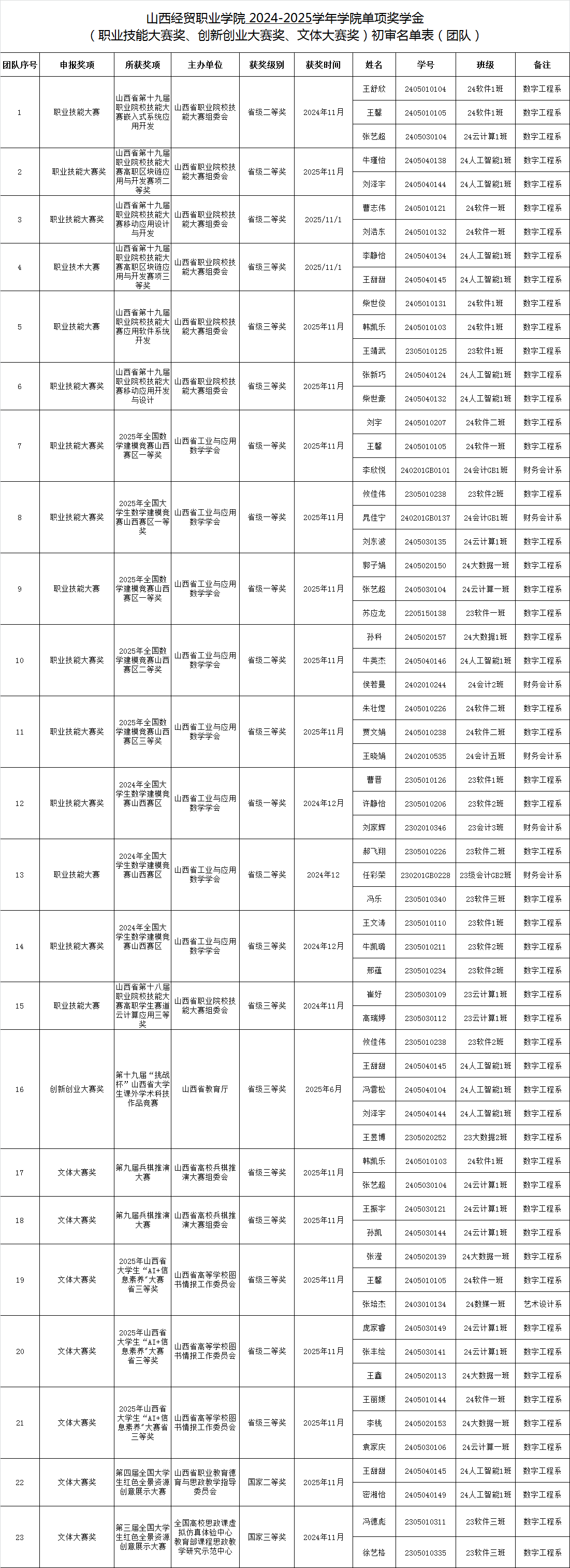 根据学院《关于开展2025年学院奖学金评选工作的通知》要求,经班级审核推荐,经我系学生工作领导组评议、党总支审议、党政联席会审定,现将数字工程系2025年学院奖学金初审名单公示如下: