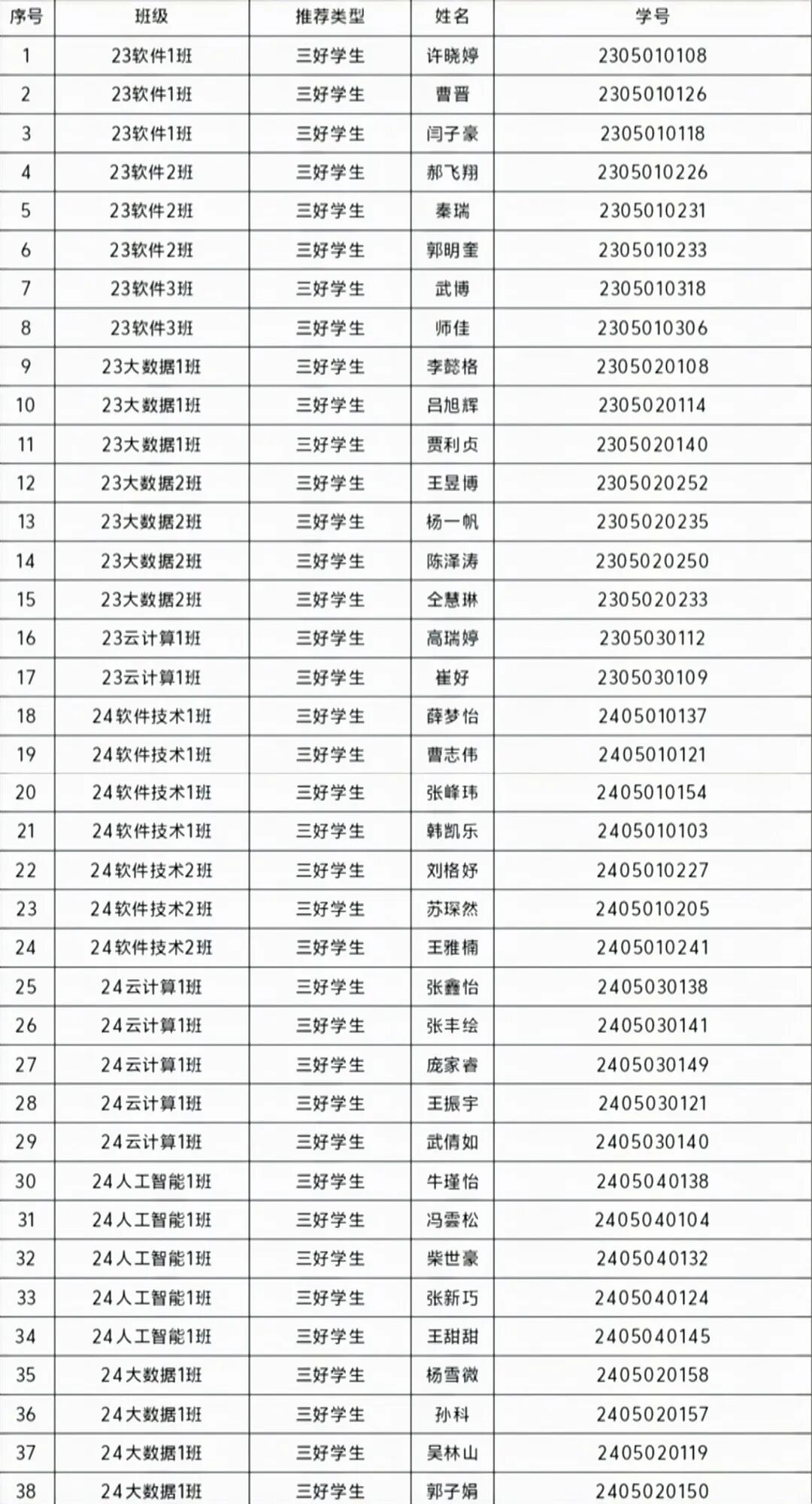 根据学院《关于组织评选 2024-2025 学年三好学生、优秀学生干部和先进班集体的通知》,经各班级、系学生工作领导小组评议,现将名单公示如下。