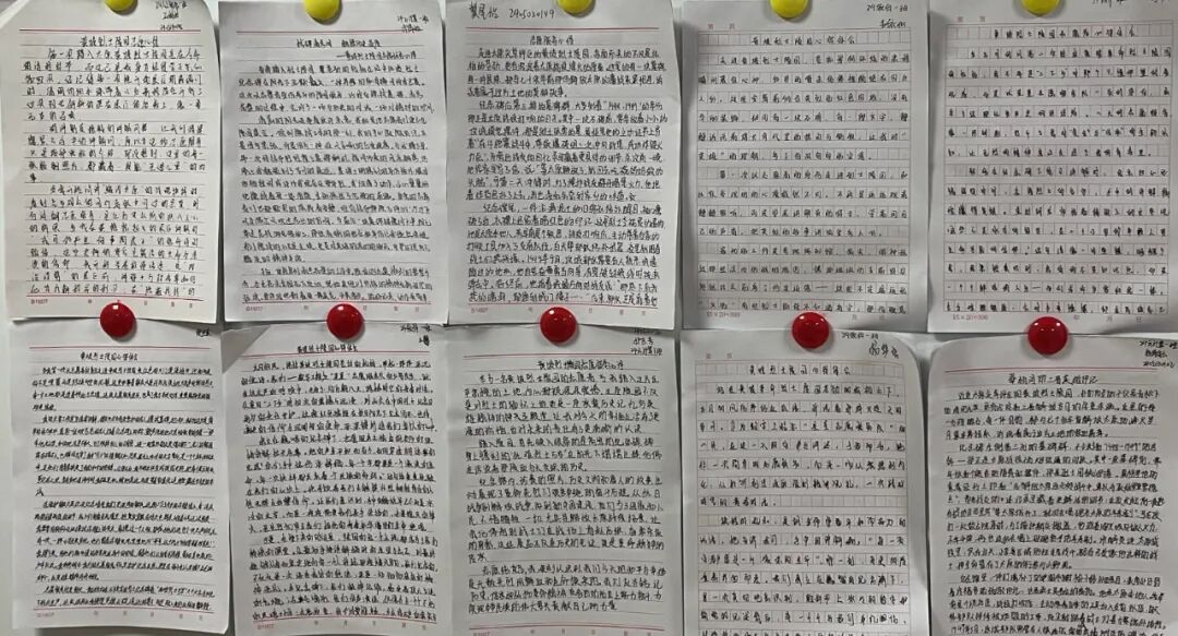 志愿者们交回来的手写心得静静叠放,字句间没有华丽辞藻,却满是滚烫的真诚。 有的页面边缘沾着淡淡的墨迹,是书写时不慎蹭上的;有的在文末写道 “ 从前觉得历史是课本上的铅字,现在才懂,它是墓碑上 清晰 的名字,是参观者眼里的泪光,是我们每一次开口时,心里沉甸甸的责任 ” ;还有人特意标注 “ 作为星星志愿服务队的一员,终于懂了聚星成火的意思, 我们讲的不是故事,是要让烈士的精神像星星一样,一直亮着 ” 。