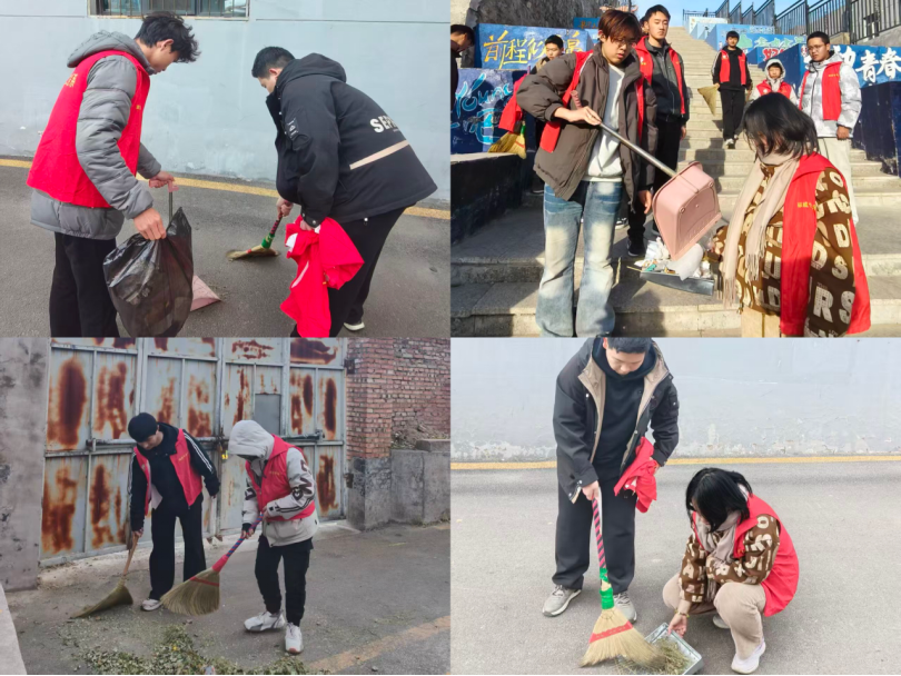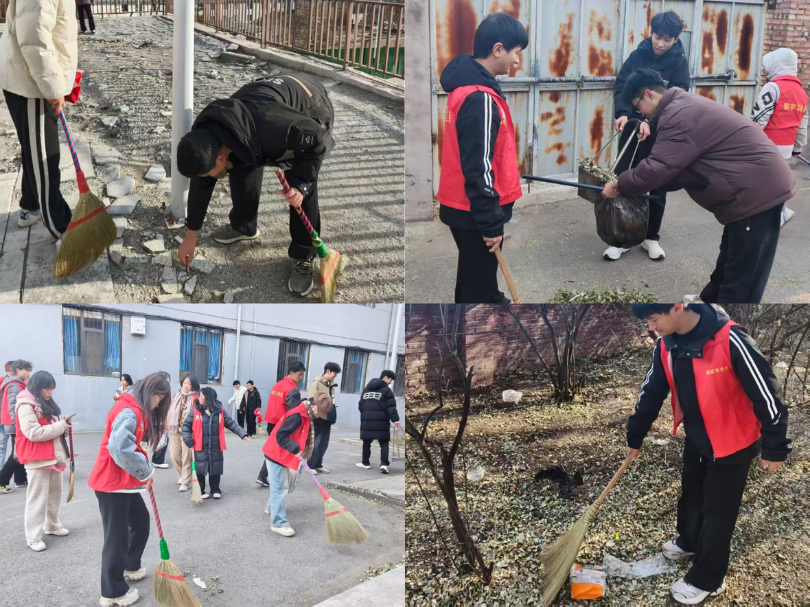 活动开始,同学们有序领取清理工具,将清洁区域细化为护栏周边、主次道路。有的同学手持扫帚清扫路面垃圾,配合簸箕将杂物归集;有的同学负责将清扫好的垃圾装入垃圾袋;还有的同学蹲在路边,清理地面的杂草或小垃圾,动作干净利落。经过清扫,校园公共区域整洁度显著提升,路面无散落垃圾,草丛无杂物堆积、公共设施洁净如新,为师生创造了更加整洁舒适的学习生活环境。