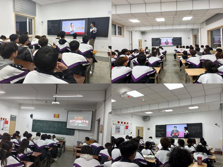 随后,《宪法伴我们成长》激昂的旋律传递出青年对宪法的尊崇与守护;在观看第十届全国学生“学宪法 讲宪法”比赛全国总决赛获奖名单及优秀作品展演时,同学们认真学习优秀选手的法治素养与表达能力,不时发出赞叹,直播结束后,学生们踊跃发言,畅谈参与活动的收获与感悟。从肃穆的升旗仪式到铿锵的条文诵读,从嘹亮的法治歌曲到精彩的赛事展演,每一个环节都让学生沉浸式感受宪法的庄严与神圣,切实提升了学生的法治意识与法治素养。
