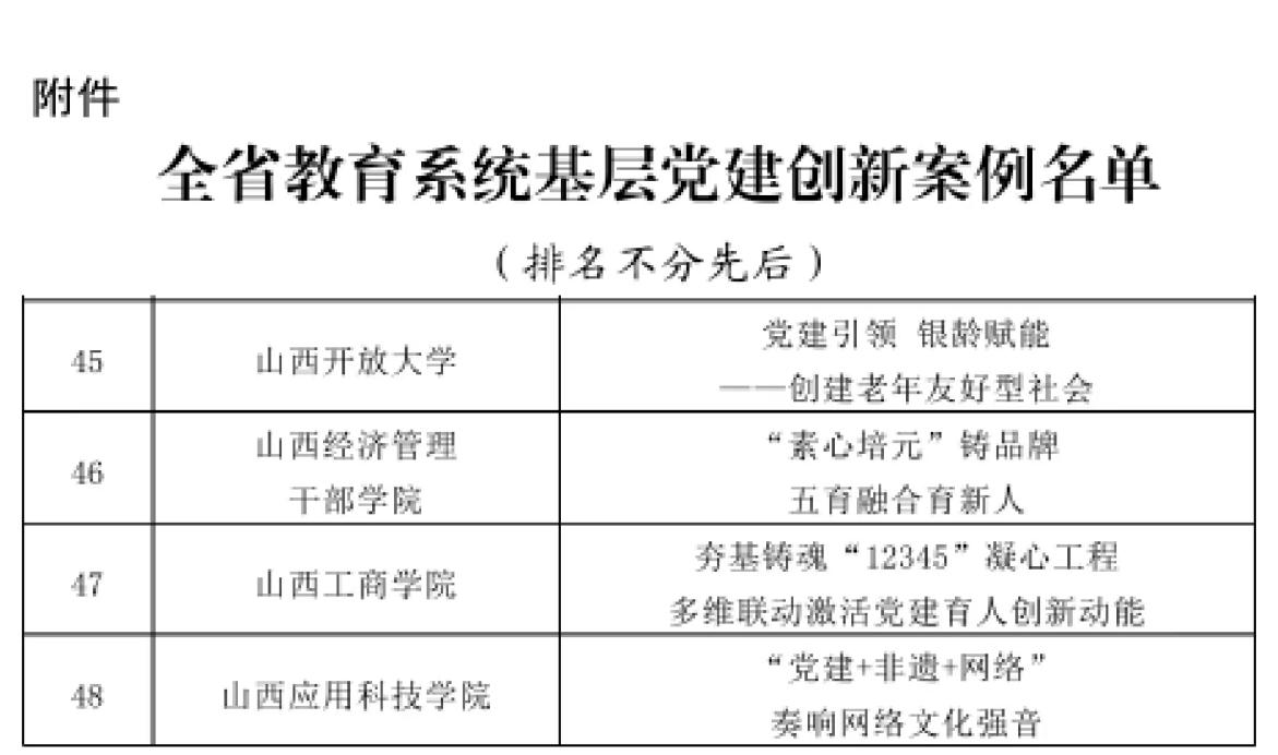 近日,在中共山西省委教育工委组织开展的基层党建创新案例征集活动中,素质教育部党支部报送的《“素心培元”铸品牌 五育融合育新人》案例,成功入选“全省教育系统基层党建创新案例名单”,成为全省86个获评的优秀案例之一!这是对素质教育部党支部坚持守正创新、深耕育人实践的高度认可。