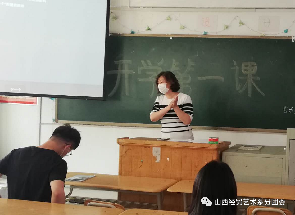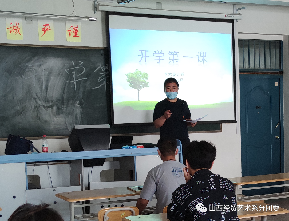 根据学院安排我系于5月26日开展了“开学第一课”主题讲座。此次讲座由艺术设计系党总支书记苏妍老师、副主任连建兵老师、组织员陆青海老师主讲,讲座过程中全体人员佩戴口罩。