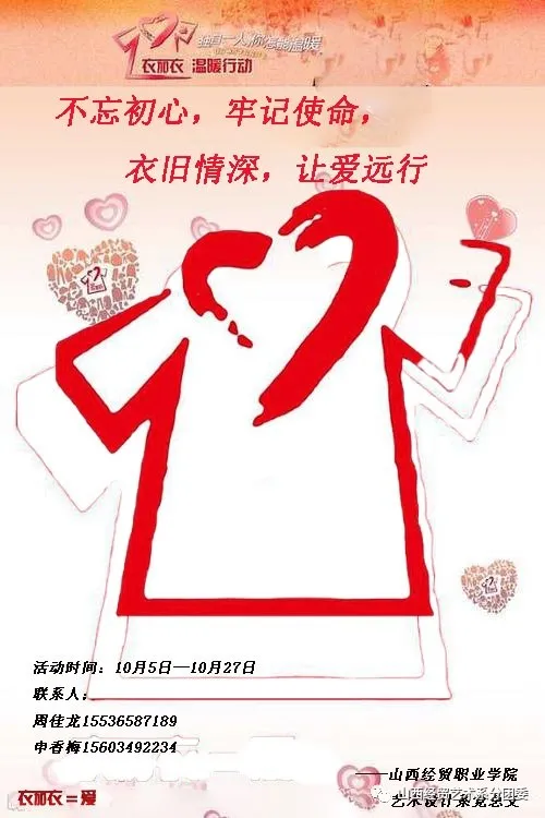 在这里我系学生会特此举办这次“伸出我们的双手,温暖他们的冬季 ”爱心捐衣活动!让我们为偏远山区的孩子送去一颗爱心一片温暖 !