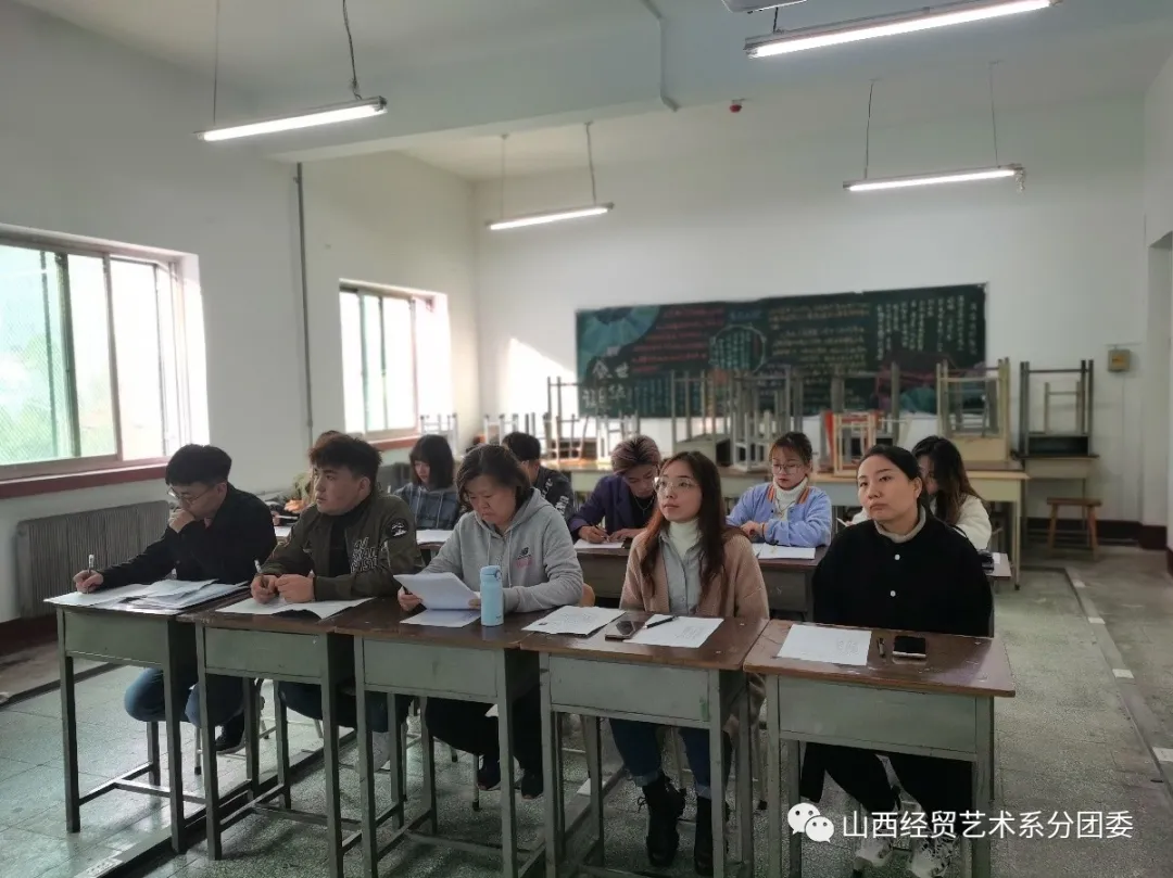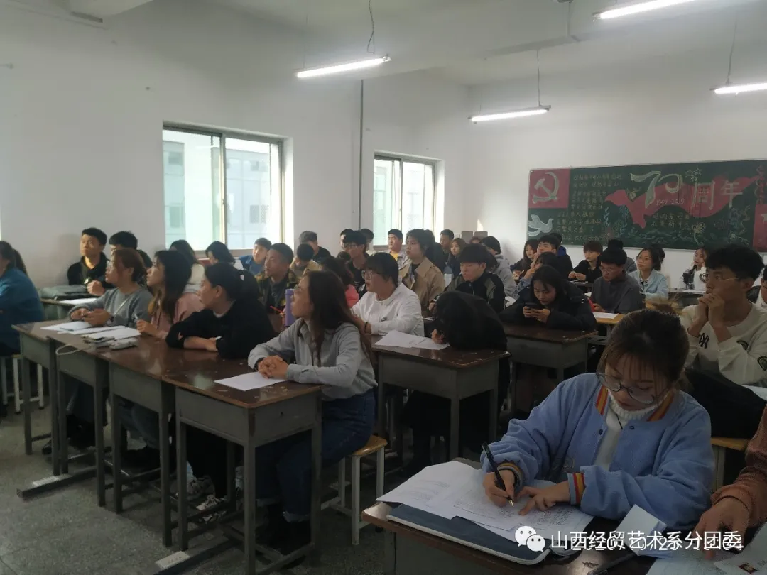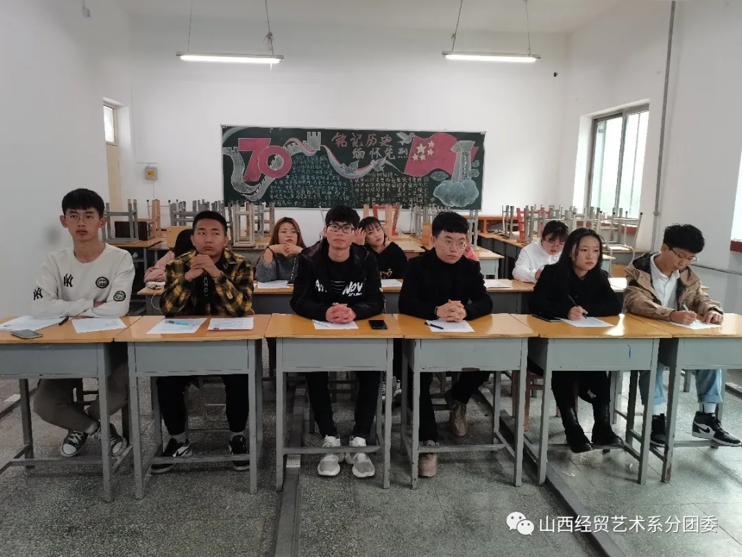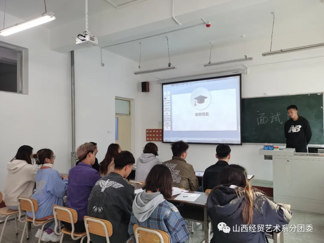 我系于2020年10月25日举行了19级学生会换届面试。党总支书记苏妍、分团委负责人冯代丽以及班主任周道静、18级学生会主席滕佳磊、主席团成员裴卓珉、苏绍凯、罗婉茹以及各部门部长担任此次换届面试评。