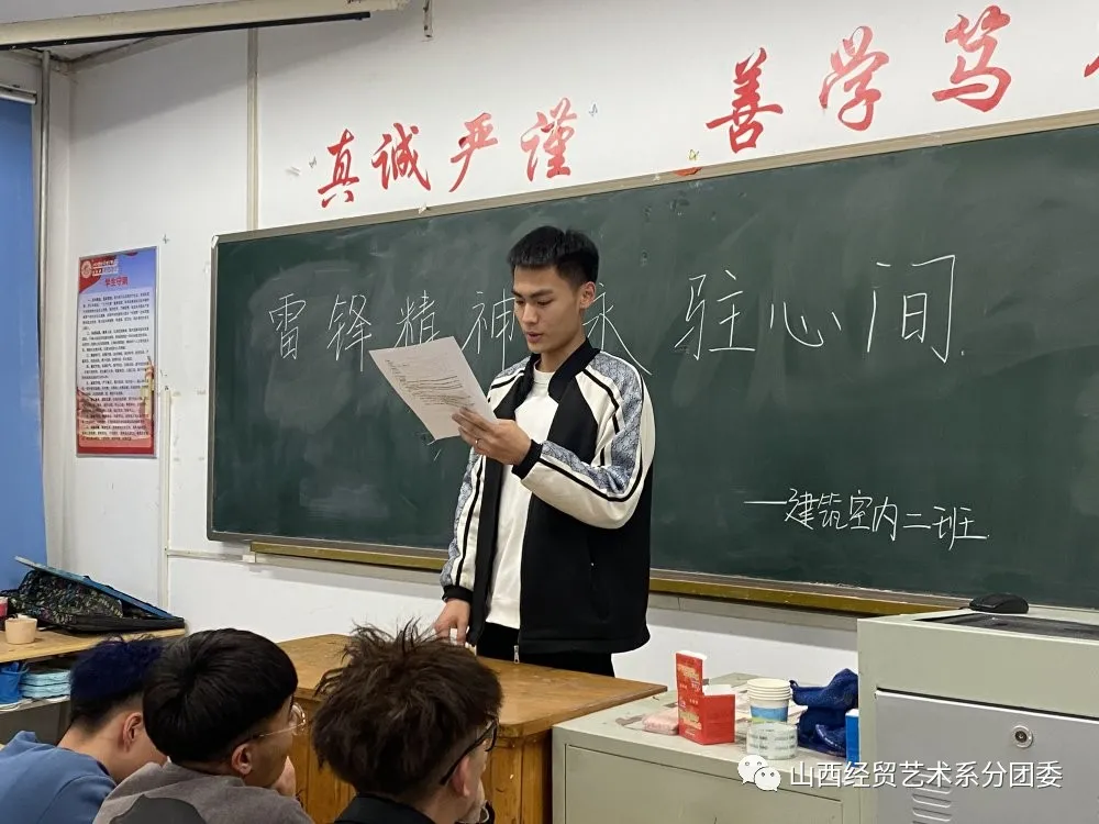 3月5日是纪念雷锋日,为了让同学们了解和缅怀先驱的伟大事迹,我系20室内二班团支书于3月11日晚上19:30,在北校区319教室开展了“雷锋精神永驻心间”主题团会。